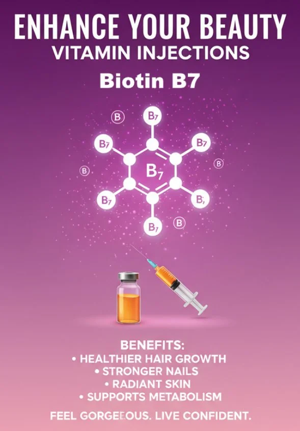 Unlike oral supplements that rely on gut absorption, injections deliver biotin directly into the bloodstream, ensuring optimal cellular uptake — especially helpful if nutrient absorption is compromised.